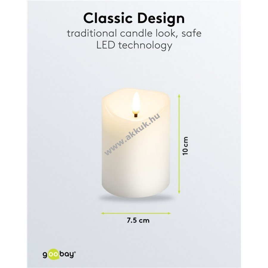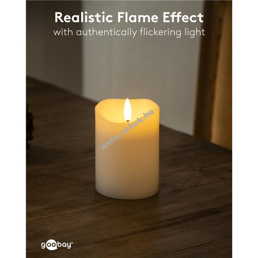 A valódi viaszos gyertya hagyományos eleganciája és a modern biztonságos fénytechnológia ötvözete.