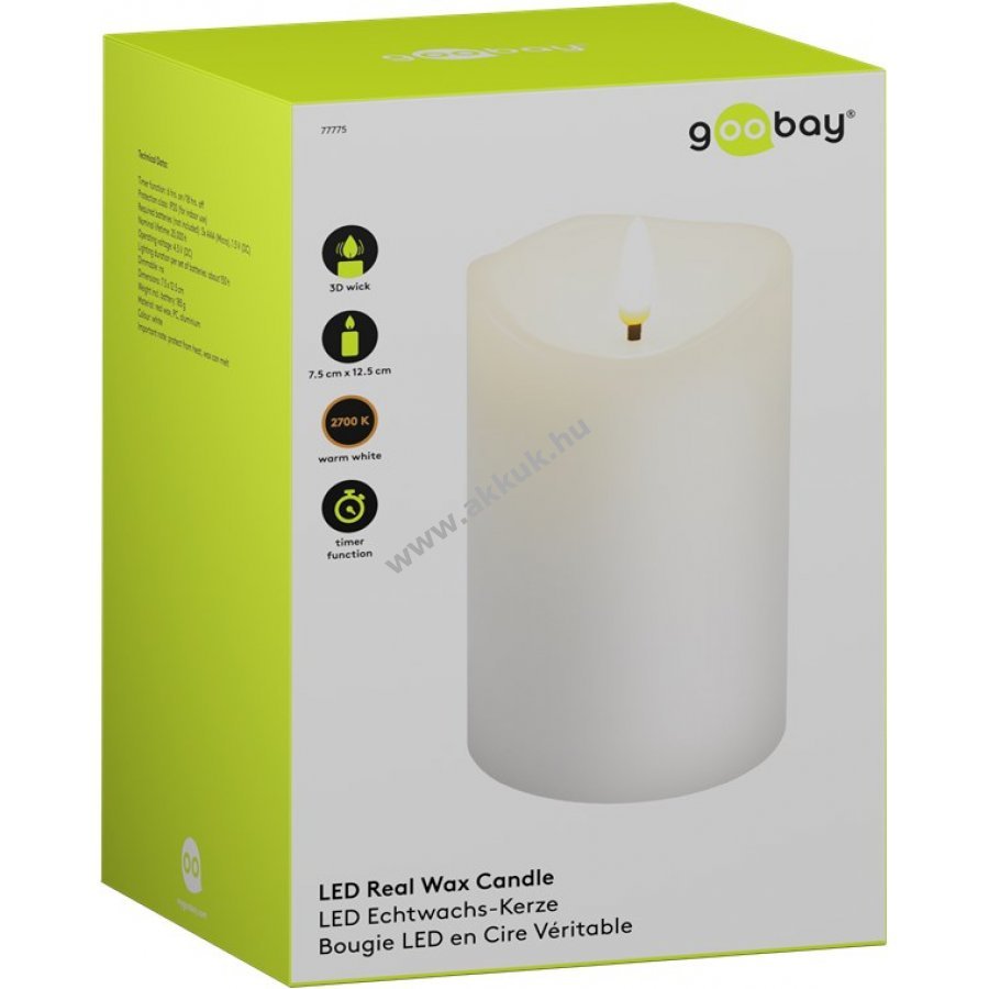 A valódi viasz bevonat és a 3D lángkúp természetes, meleg fényt biztosít időzítő funkcióval.