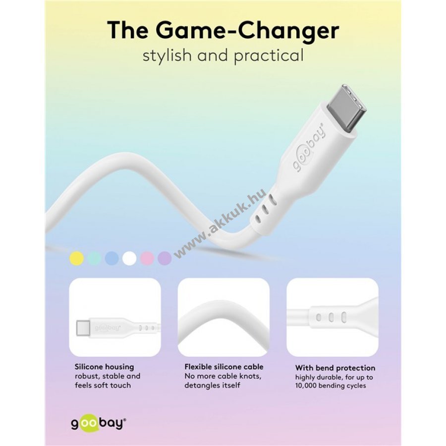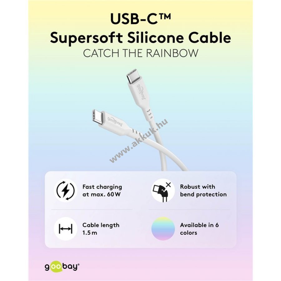 USB-C töltőkábel a Power Delivery segítségével történő szupergyors töltéshez, akár 60W teljesítménnyel. Adatátvitelre is tökéletes: az USB-C kábel akár 480 Mbit/s (USB 2.0) sebességű nagysebességű adatátvitelt biztosít. A bársonyosan puha szilikon kábelburkolat kellemes tapintású és kíméletes az érzékeny felületekkel A gyors töltésű kábel szilikon burkolata nagy rugalmasságának és beépített hajlításvédőjének köszönhetően hatékonyan megakadályozza a kábel összegabalyodását és törését Az USB-CUSB-C kábel sima felületének köszönhetően gyorsan és egyszerűen tisztítható Szilikon kábelkötegelőkkel együtt, amelyekkel a használat után biztonságosan és szépen össze lehet kötni az USB-C kábelt.