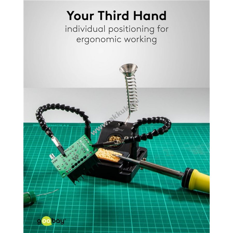 Kompakt forrasztósegéd amely harmadik negyedik és ötödik kézként segíti a precíz forrasztási és barkács munkákat. Egyedi kialakítású állítható flexibilis nyakú karokkal és emelt forrasztópáka tartóval a kényelmes használatért. Egyszerű beállítás pontos munka minden profi és hobbi felhasználónak.
