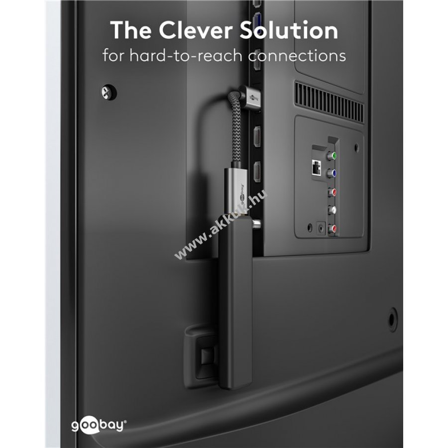 A kábel rugalmas és hajlékony, ideális nehezen elérhető csatlakozókhoz például TV hátoldalán.