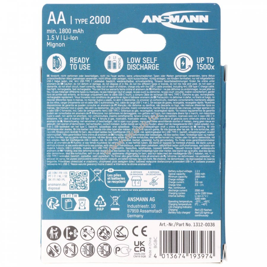 1.5V 2000mAh/3.26Wh Li-Ion lila 14,5mm x 50,5mm 109 gr. Ansmann 1 év jótállás (további részletek)