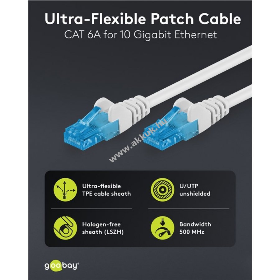 Ultrarugalmas CAT 6A hálózati kábel puha TPE külső borítással a jobb kezelhetőségért és kellemes tapintásért.
