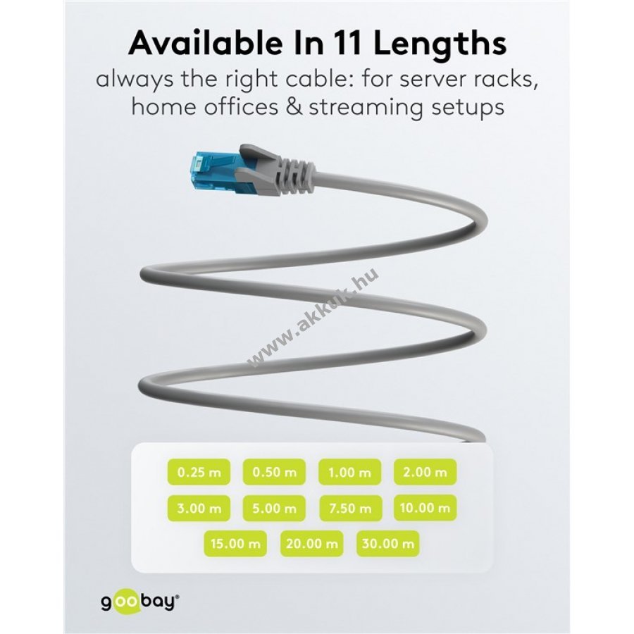 Ultrarugalmas CAT 6A patchkábel puha TPE külső borítással a jobb kezelhetőségért és kellemes tapintásért. Kiváló választás otthoni irodába, szerver szekrénybe vagy streaming rendszerhez.