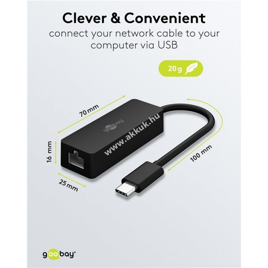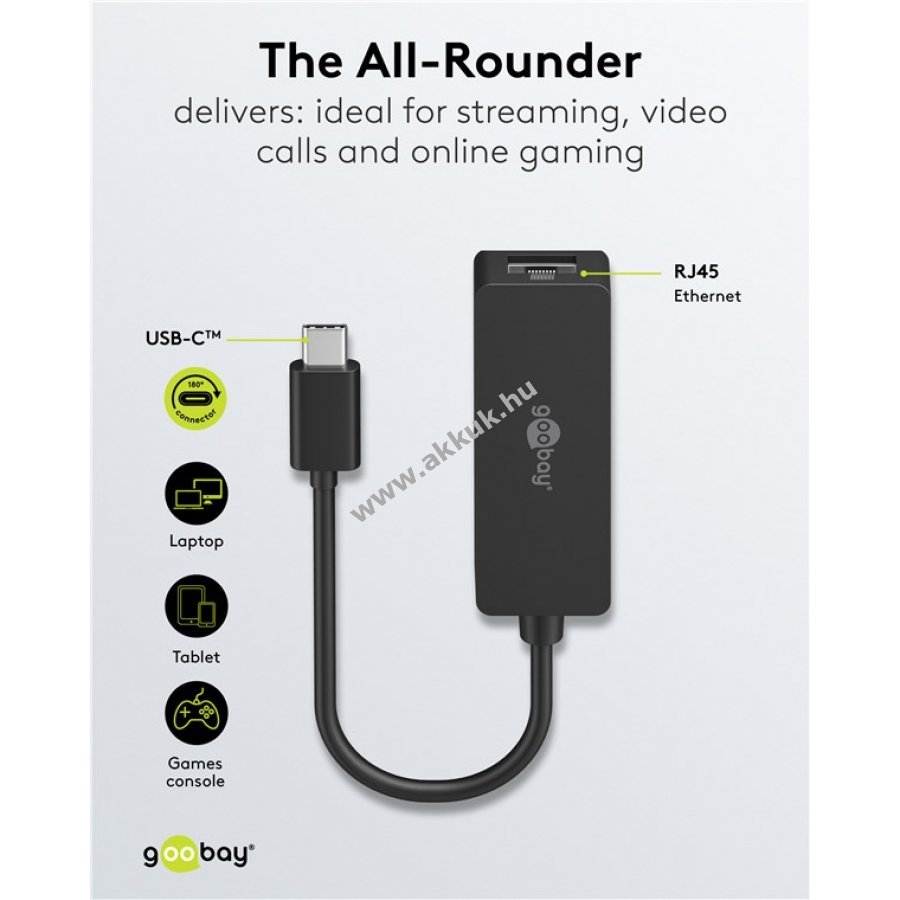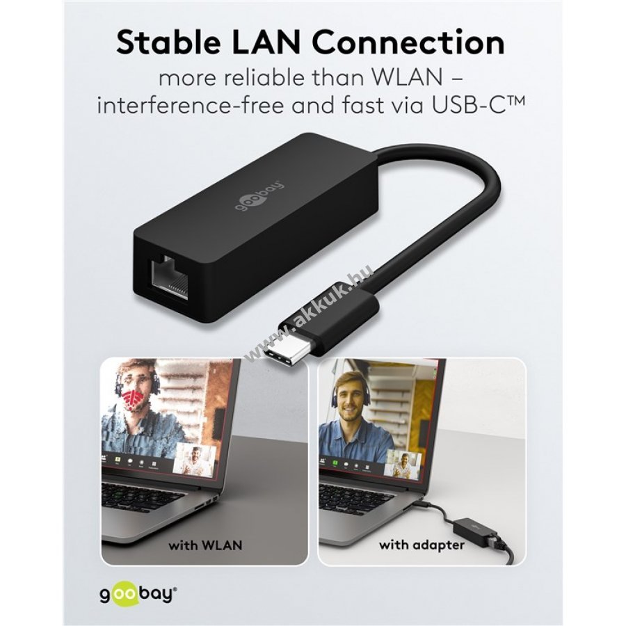 A vezetékes internet stabilabb és zavarmentesebb, mint a Wi-Fi, de a laptopon nincs Ethernet-csatlakozó. A Goobay USB-C LAN adapter egyszerűvé teszi a hálózati kábel csatlakoztatását.