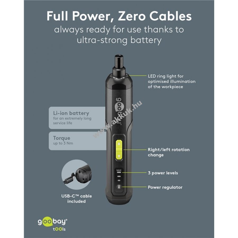 5V 1500 mAh 184mm x 36mm x 38mm 246 gr. Goobay Tools 1 év jótállás (további részletek) 4040849778162
