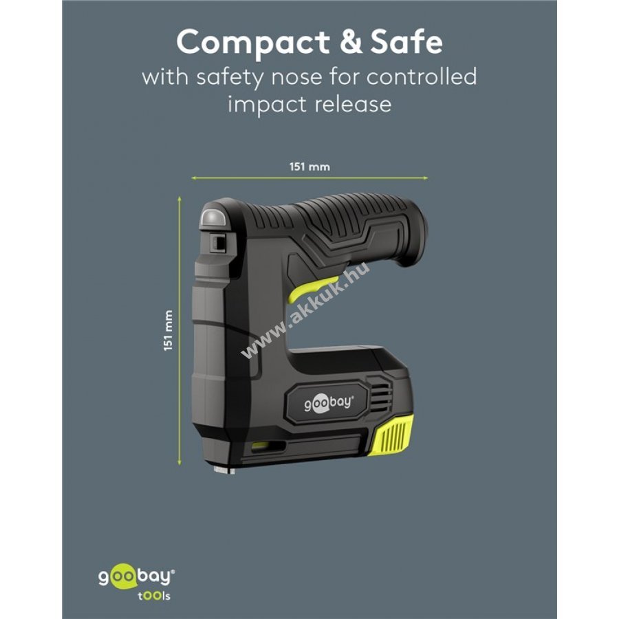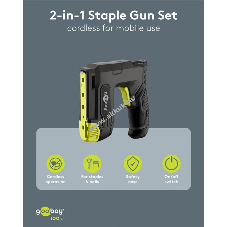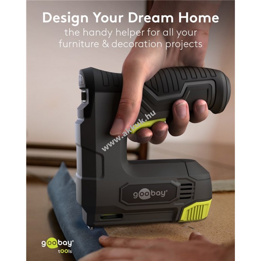 A vezeték nélküli elektrotacker ideális bútorjavításhoz, kárpitozáshoz és szigetelőanyag vagy szegélylécek rögzítéséhez.