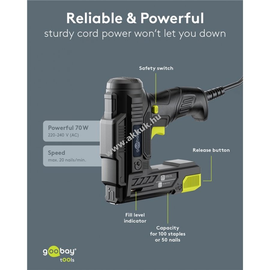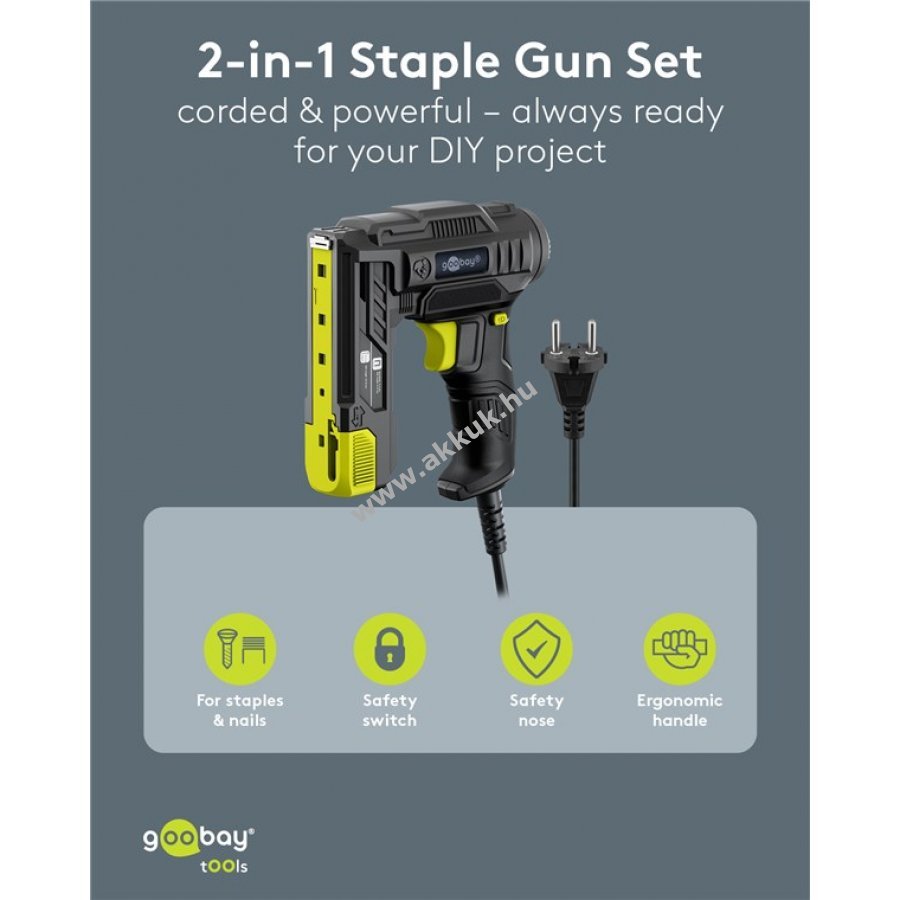 - 2 az 1-ben funkció: kapcsokkal és szögekkel is használható, így felújítási munkákhoz is rugalmasan alkalmazható