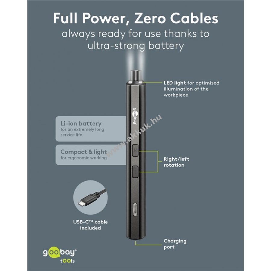 5V 350 mAh fekete Goobay Tools 1 év jótállás (további részletek) 4040849778384