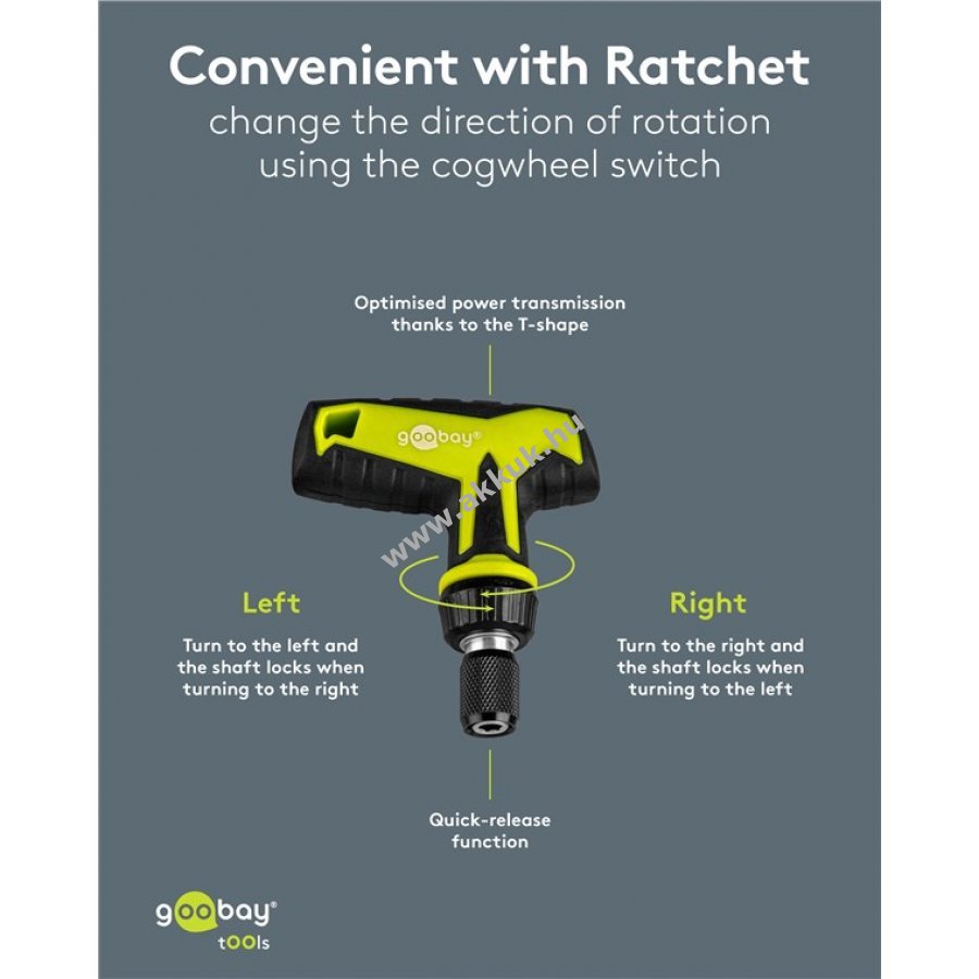 Optimalizált erőátvitel a gumírozott fogantyús T-ratchetnek és gyorskioldó funkciónak köszönhetően