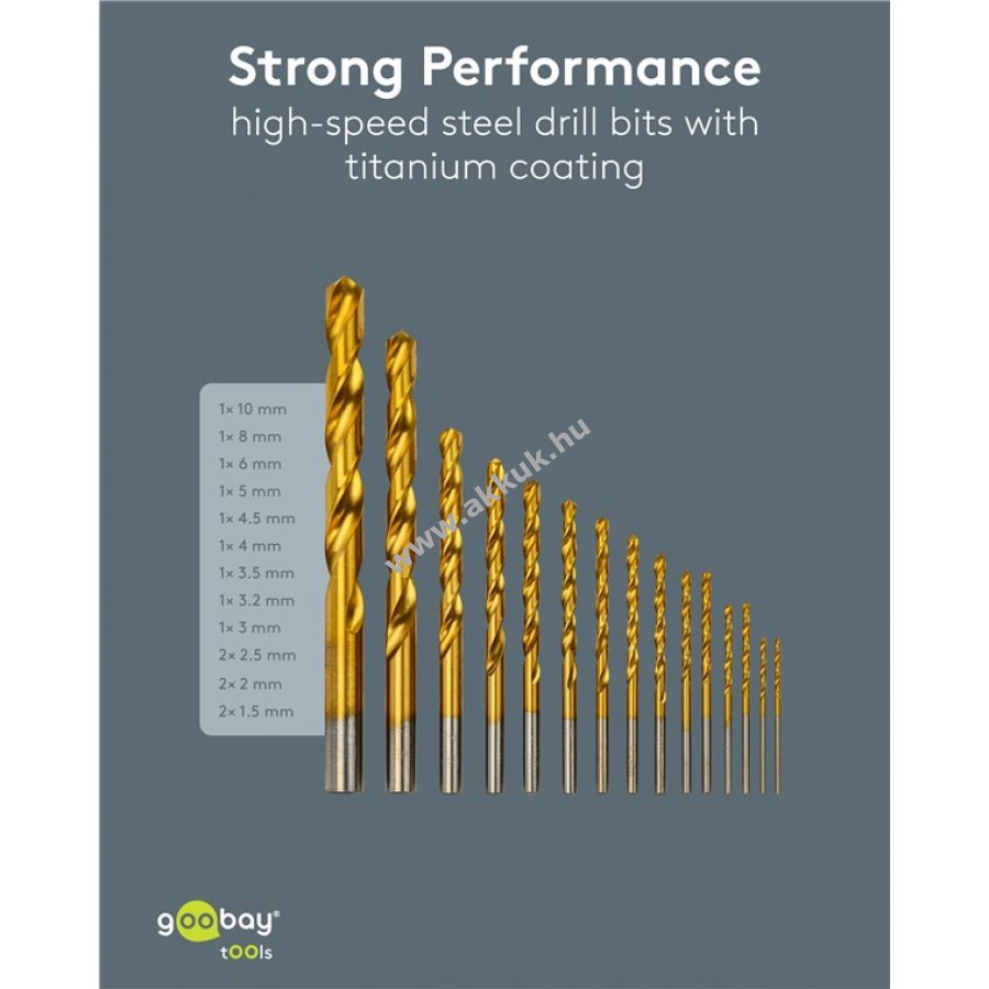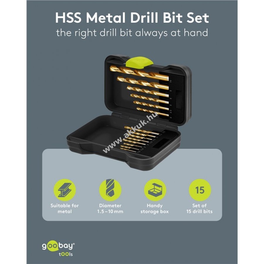 Fémek fúrásához készült tartós HSS fúrók titan bevonattal a hosszú élettartamért és kopásvédelemért. A központosító hegy pontos fúrást biztosít anélkül, hogy a lyuk elcsúszna. A készlet ideális szerelési munkákhoz, javításokhoz és fémalkatrészek módosításához. 15 különböző átmérőjű fúró található a masszív tárolódobozban, melyben minden fúró és helye egyértelműen jelölve van a gyors kiválasztáshoz.