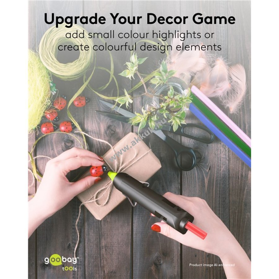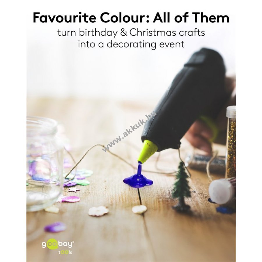 Színes melegragasztó rudak kreatív dekorációkhoz és kézműves projektekhez. Megbízható tapadást biztosítanak különböző anyagokon és felületeken, például papíron, kerámián, fán, fémeken, bőrön, akrilon és üvegen. Alkalmas minden 11 mm-es nyílású melegragasztó pisztolyhoz. Kiváló folyatási tulajdonságok olvadás után a könnyű kezelhetőség érdekében. Gyorsan száradó ragasztó a kényelmes rögzítéshez, különösen apró vagy laza alkatrészek esetén. Egy rúd átmérője 11 mm hosszúsága 200 mm.