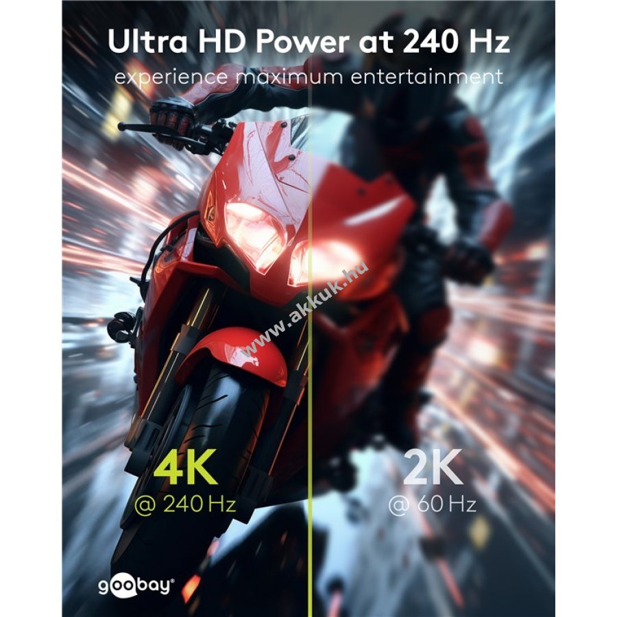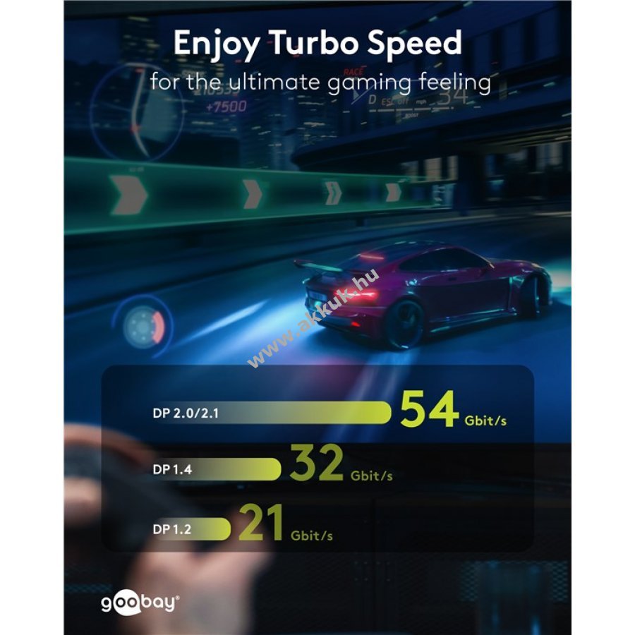 Támogatja a 8K 144 Hz vagy 4K 240 Hz felbontást és akár 54 Gbit/s adatátvitelt.