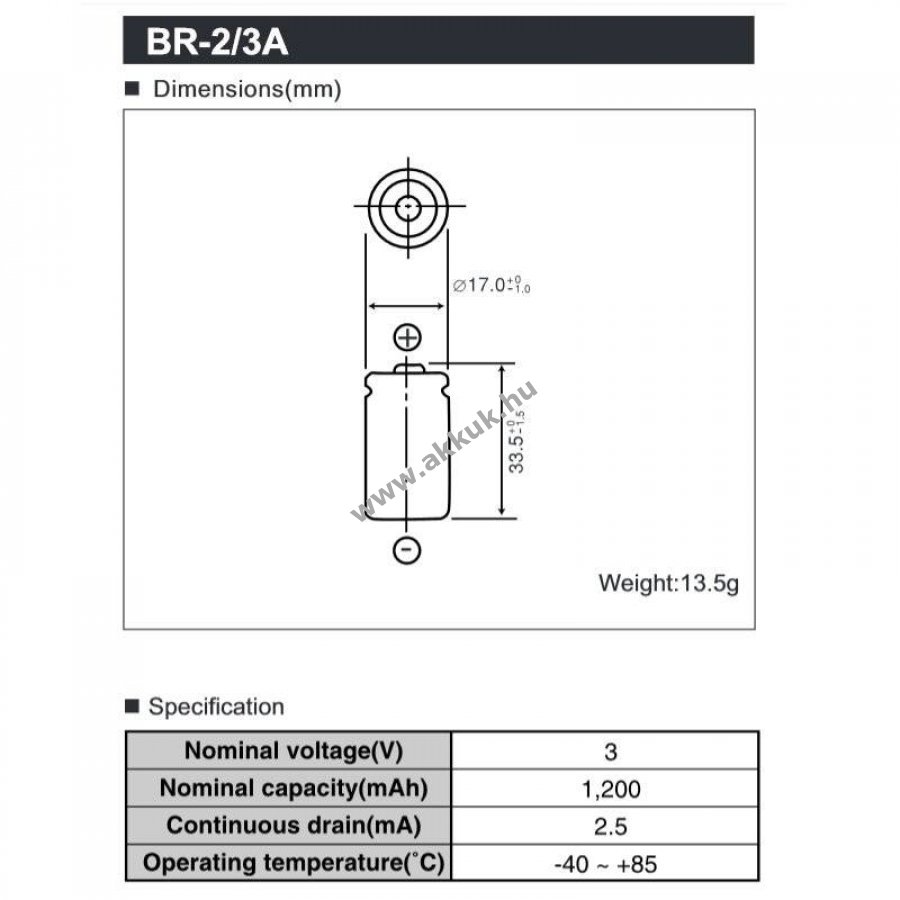 3V 1200mAh/3.6Wh Li-Ion 33.5mm x 17mm 14 gr. Panasonic Szavatosság (további részletek)