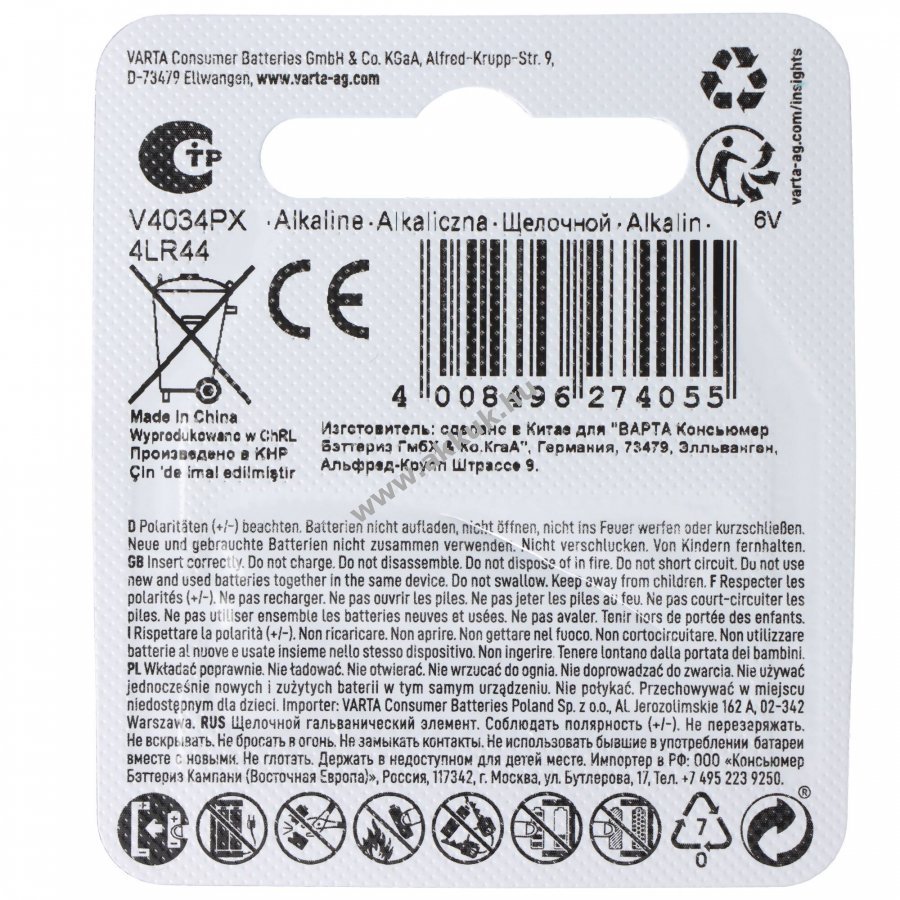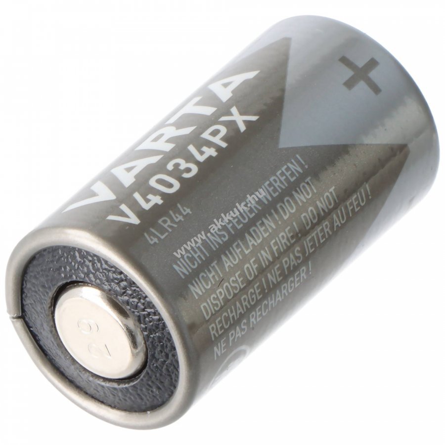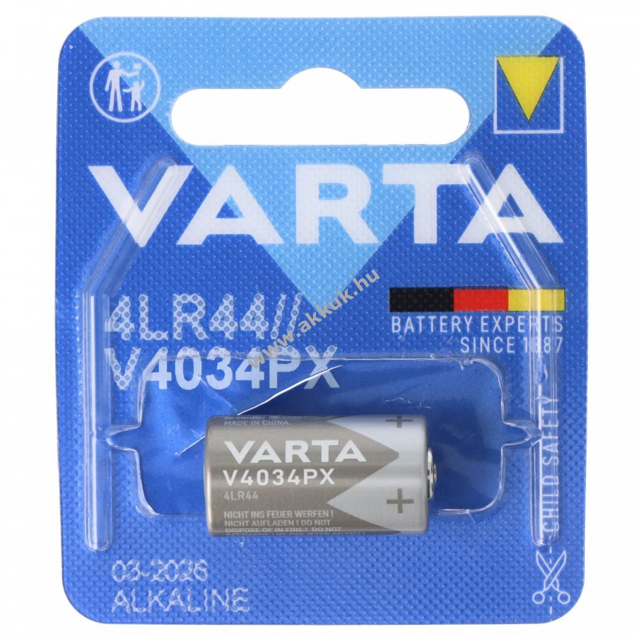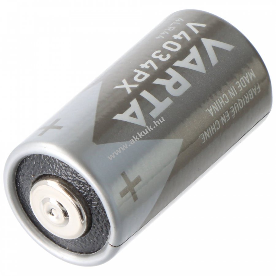 Varta 4LR44 (V4034) egyszer használatos alkáli elem alacsony önkisüléssel és hosszú tárolhatósággal.