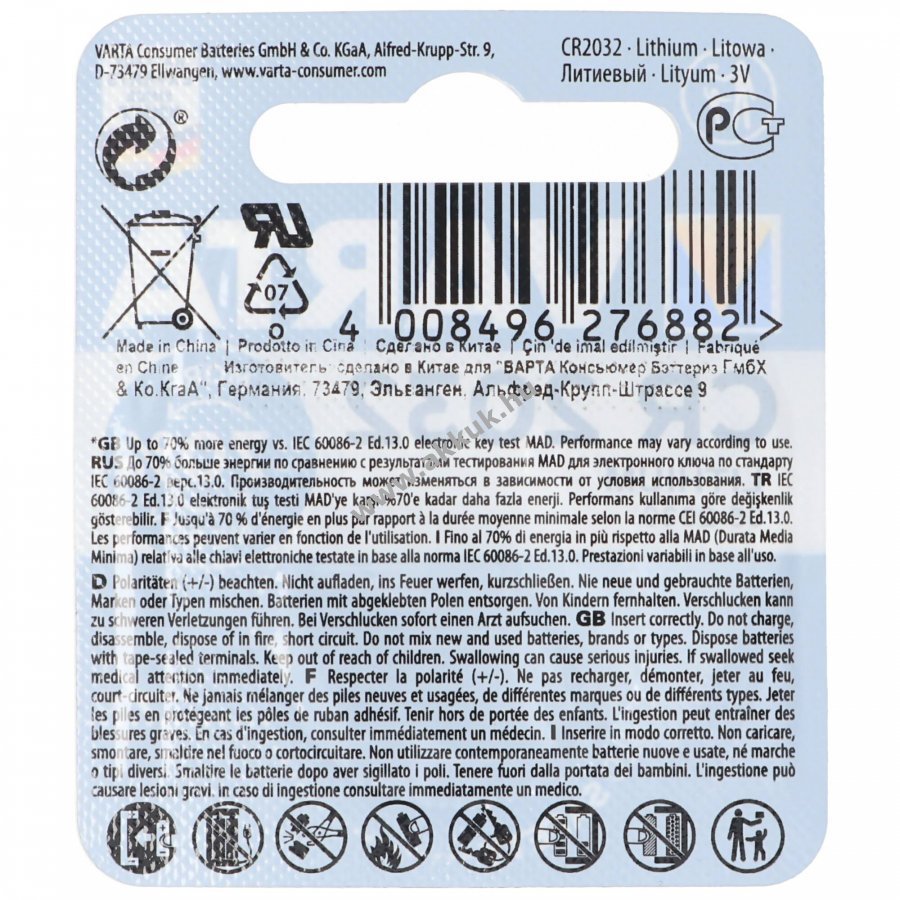 3V 230mAh 20mm x 3.2mm 10 gr. Varta Szavatosság (további részletek)