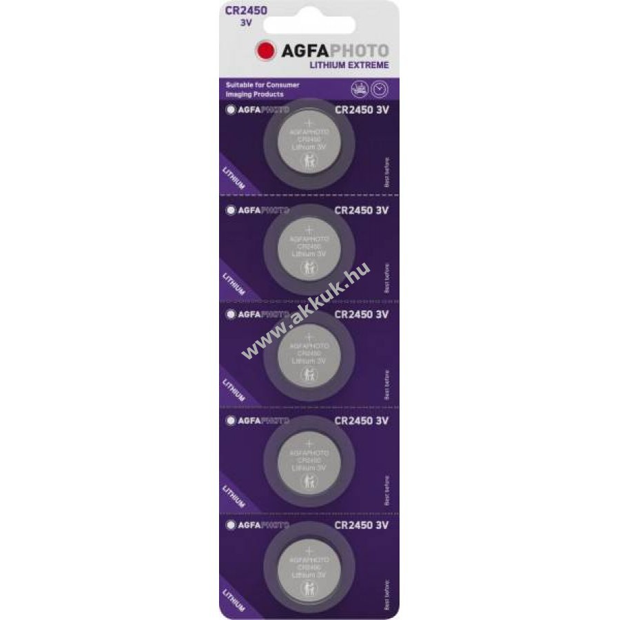 Agfaphoto lítium gombelem CR2450 3V 5db/csomag