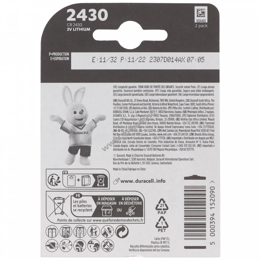 3V Li-Ion 3.00mm x 24mm 5 gr. Duracell Szavatosság (további részletek)