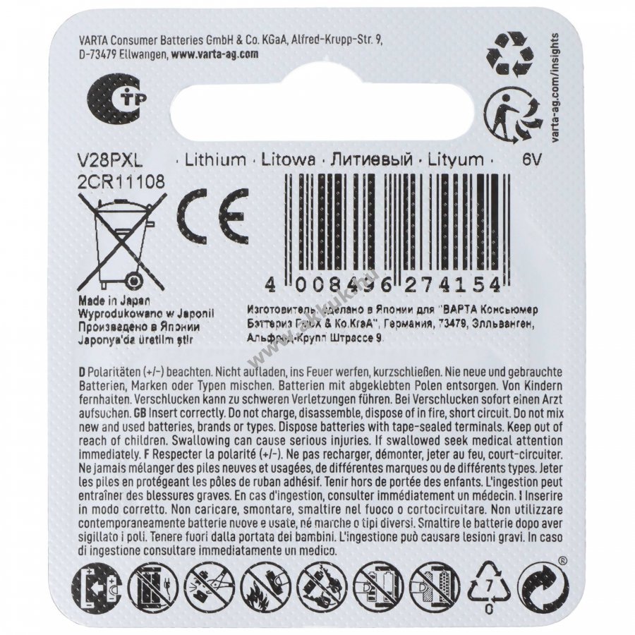 6V 160mAh Li-Ion 9 gr. Varta Szavatosság (további részletek)