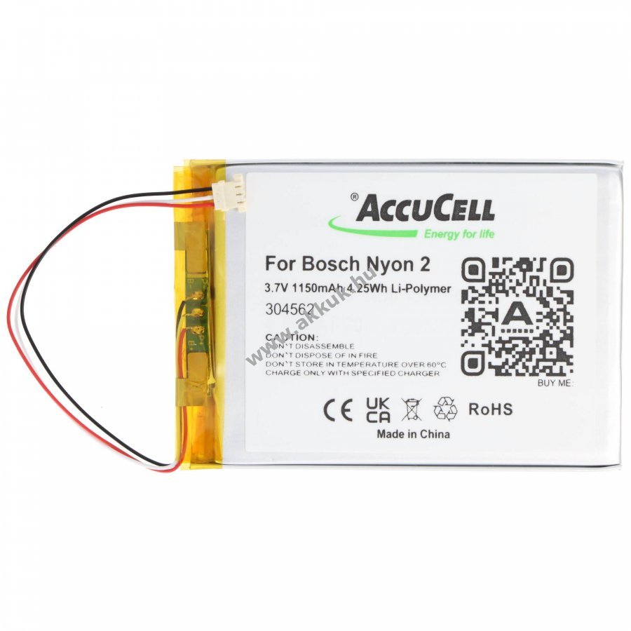 3.7V Li-Polymer 65.5mm x 45.6mm x 3.8mm 19 gr. AccuCell Szavatosság (további részletek)