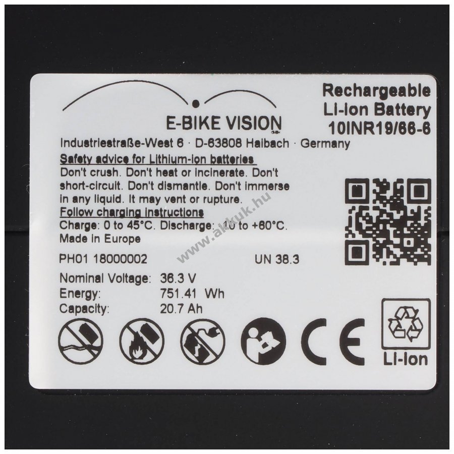 36V 20700mAh/745.2Wh Li-Ion 372mm x 98.2mm x 98.4mm 3193 gr. e-bike-vision 3 év jótállás (további részletek)