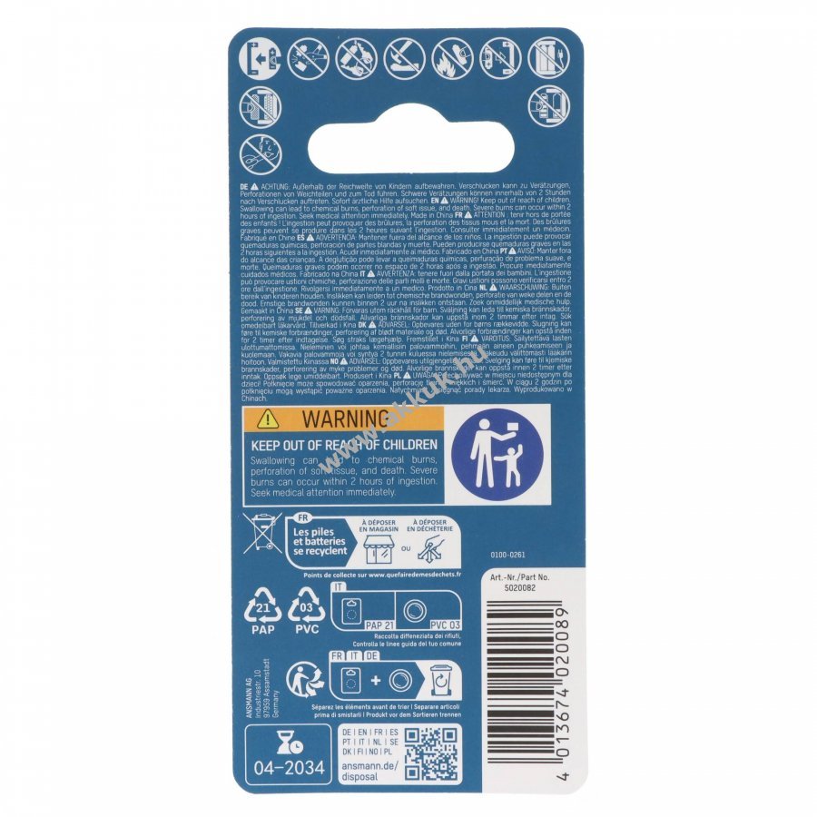 3V Li-Ion 20mm 5 gr. Ansmann Szavatosság (további részletek)