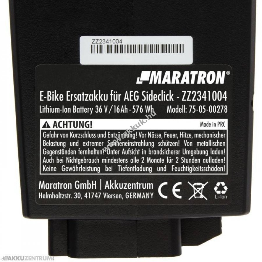 36V 16Ah fekete 34mm 3 gr. AccuCell 2 év jótállás (további részletek)