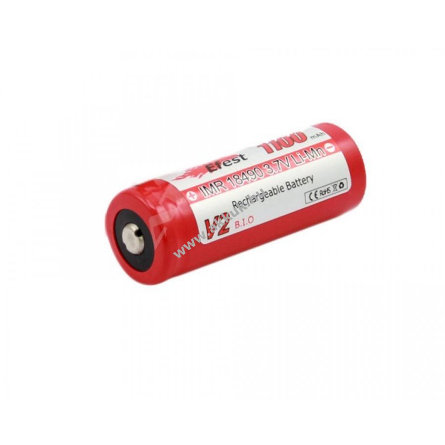3.7V 1100mAh/4.1Wh Li-Ion 18mm x 49mm 34 gr. Efest Szavatosság (további részletek)