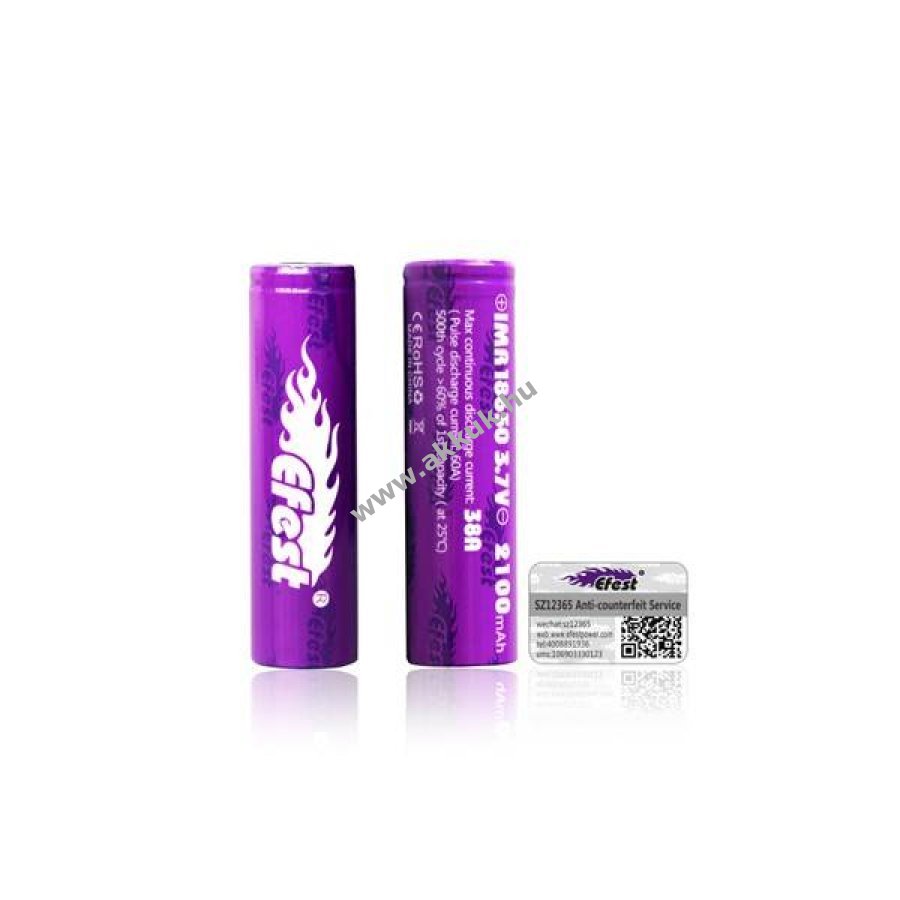 3.7V 2100mAh/7.6Wh Li-Ion 18mm x 65mm 46 gr. AccuCell Szavatosság (további részletek)