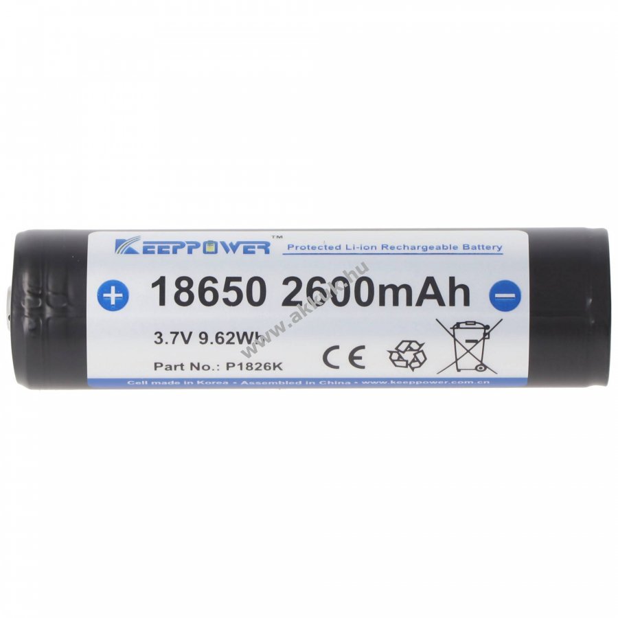 3.7V 2600mAh/9.7Wh Li-Ion 18mm x 69mm 47 gr. AccuCell Szavatosság (további részletek)