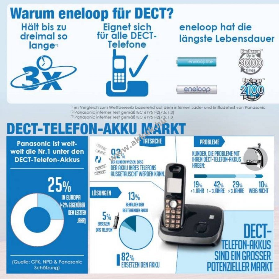 Panasonic eneloop Micro (AAA/HR03/LR03) újratölthető akkumulátor, előtöltve, alacsony önkisüléssel, kifejezetten DECT telefonokhoz.
