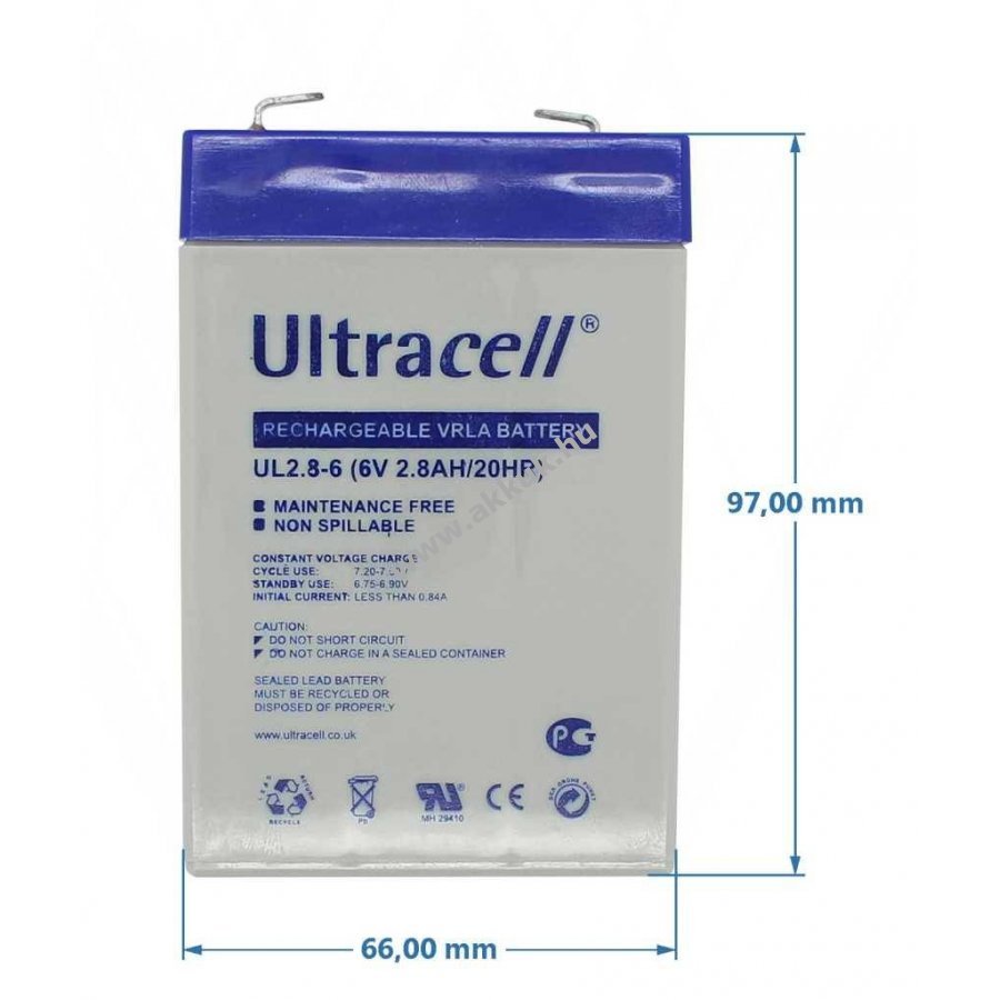 6V 2800mAh/16.8Wh Pb 66mm x 33mm x 97mm Ultracell Szavatosság (további részletek)