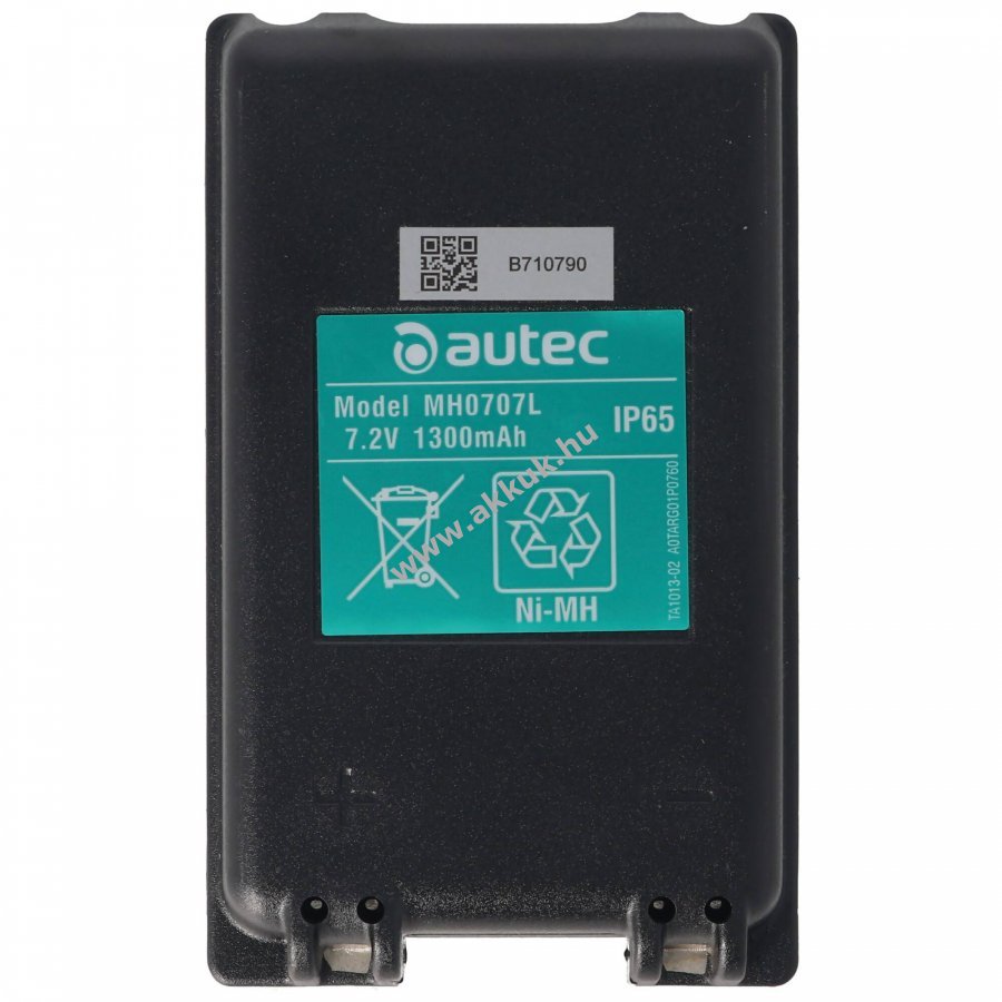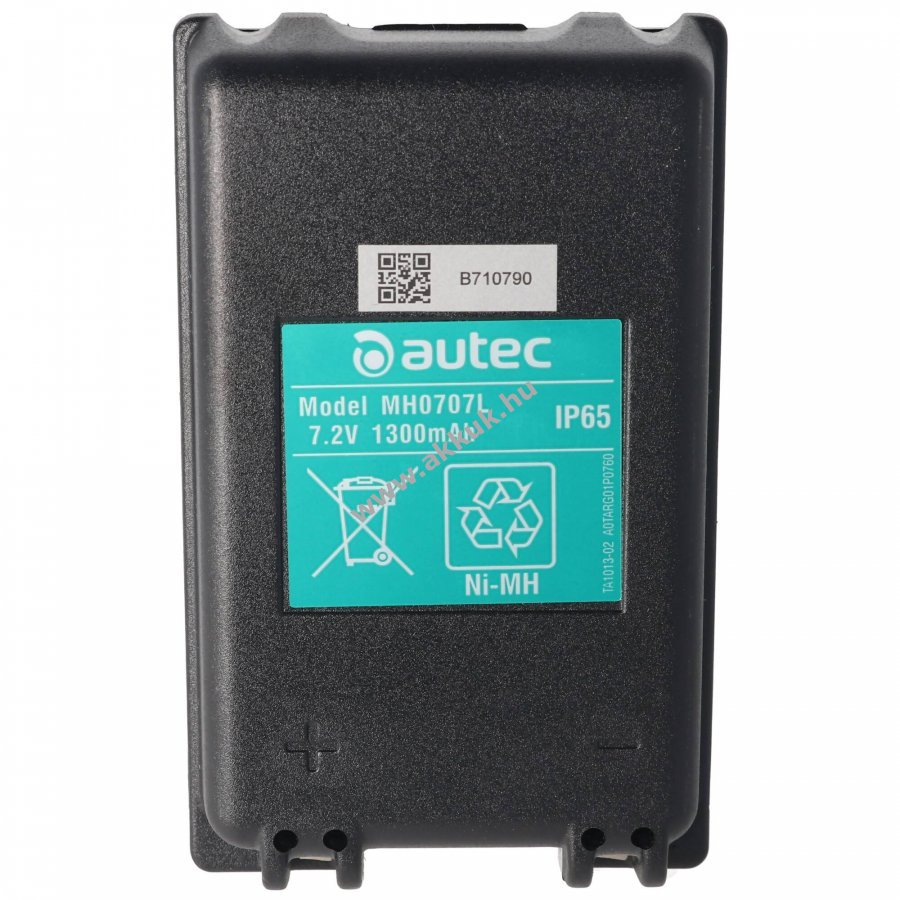 Eredeti Autec MH0707L NiMH akkumulátor 7,2V feszültséggel és 1300mAh kapacitással. Méretei 107x66x21 mm, súlya 208 g.