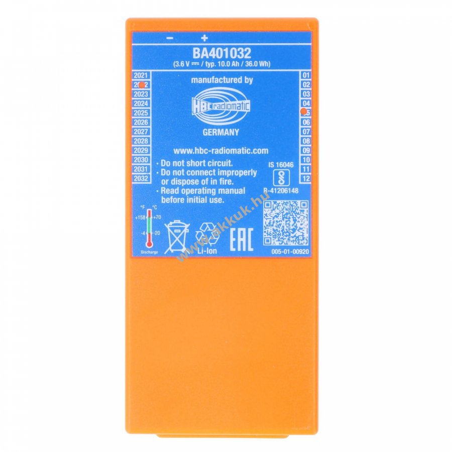 Eredeti Li-ion akkumulátor HBC Radiomatic Spectrum E távirányítóhoz (BA401030, BA401031, BA401032). 3,6V feszültségű, 10000mAh kapacitású. Méretei kb. 123x57x25 mm, súlya 217 g.