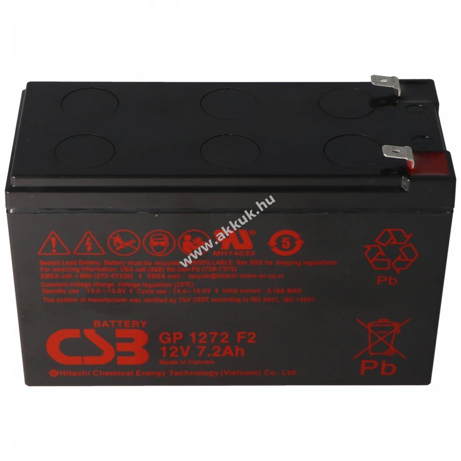 A CSB GP1272-F2 karbantartásmentes AGM ólomakkumulátor készenléti (standby) alkalmazásokhoz, VDS G120030 engedéllyel.