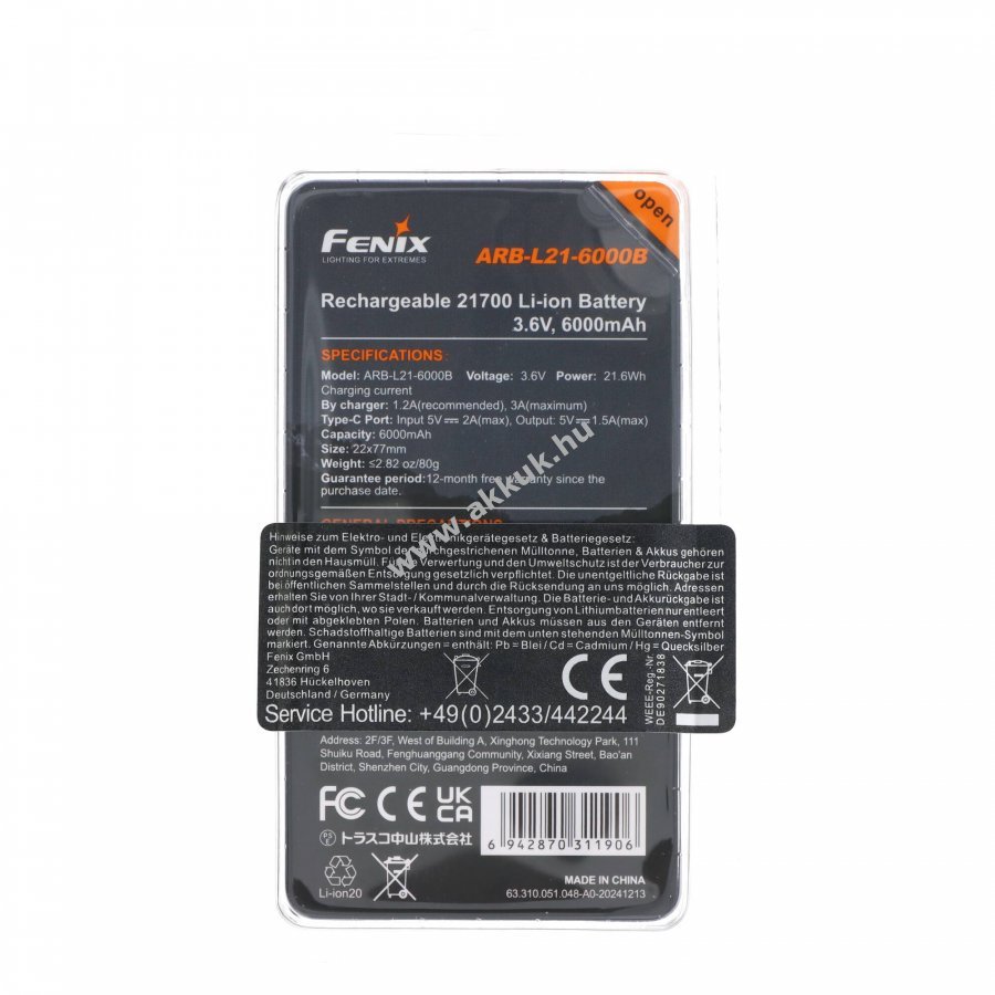 3.6V 6000mAh/21.6Wh Li-Ion 21.8mm x 76.7mm 78 gr. Fenix 1 év jótállás (további részletek)