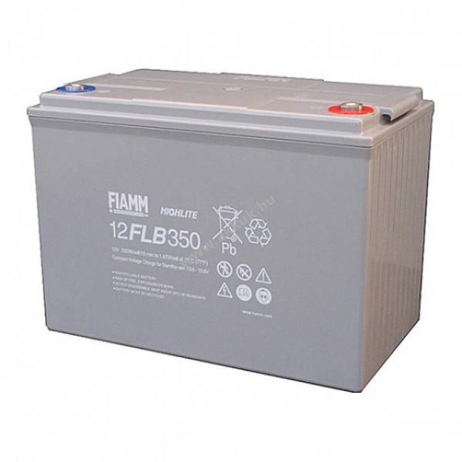 Fiamm 12FLB350 12V ólomakkumulátor, karbantartásmentes kivitel, gyártói adatok szerint 10 év élettartam.