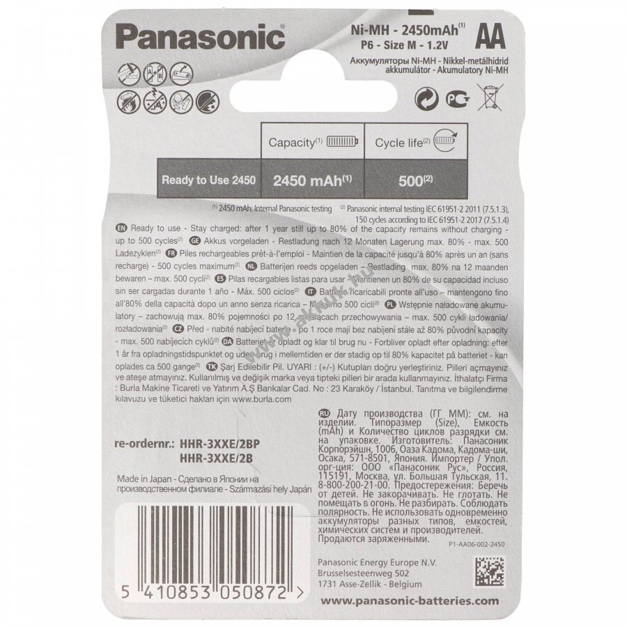 Panasonic HHR-3XXE Evolta AA Mignon ceruza 2450mAh újratölthető NiMH akku, azonnal használatra kész, nagy kapacitású megoldás gyakori és nagy energiaigényű használathoz.
