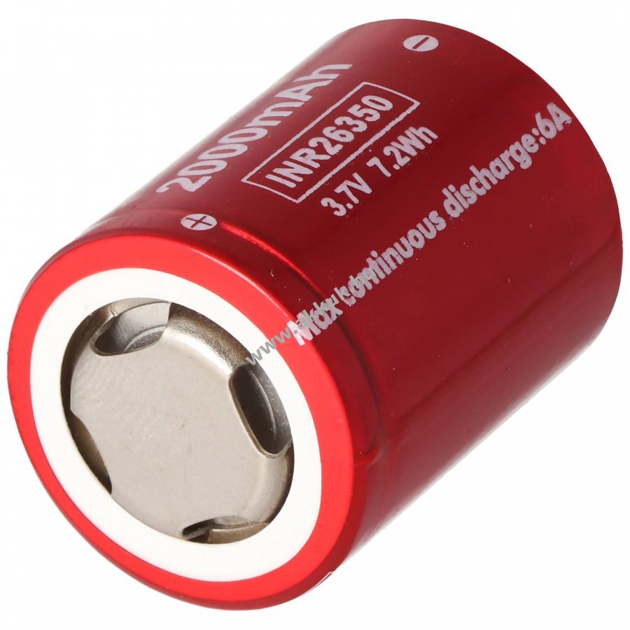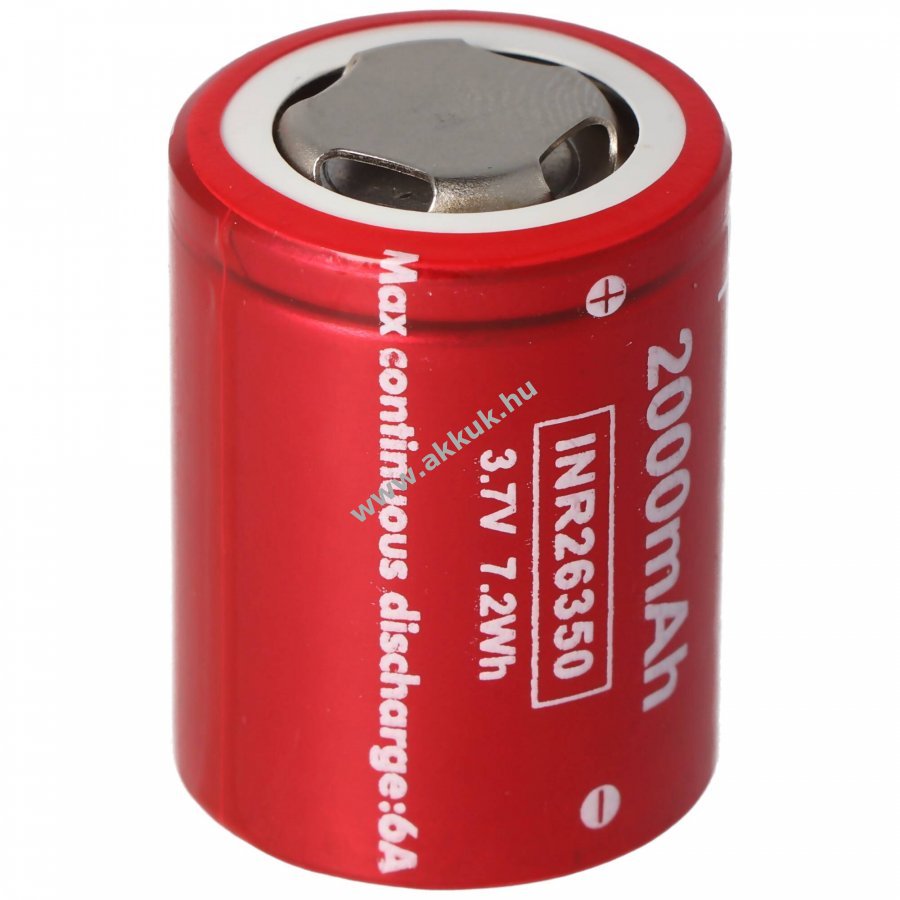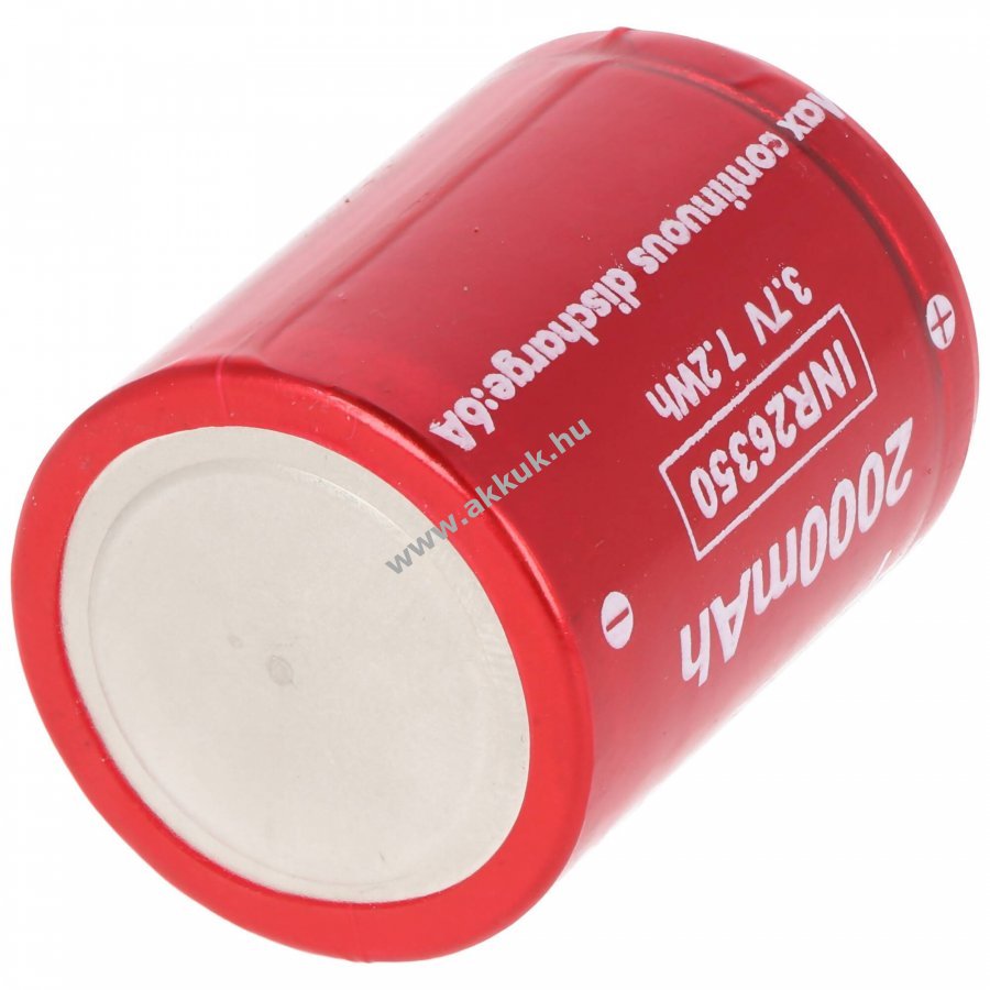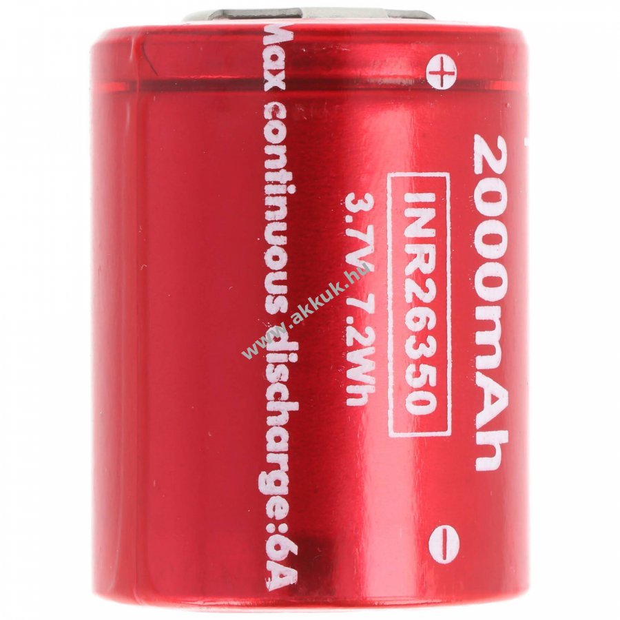 Li-ion 26350 cella (INR26350 A20) kompakt, flattop kivitel alacsony kapacitásveszteség hosszabb tárolás esetén, tölthető a meglévő töltővel.