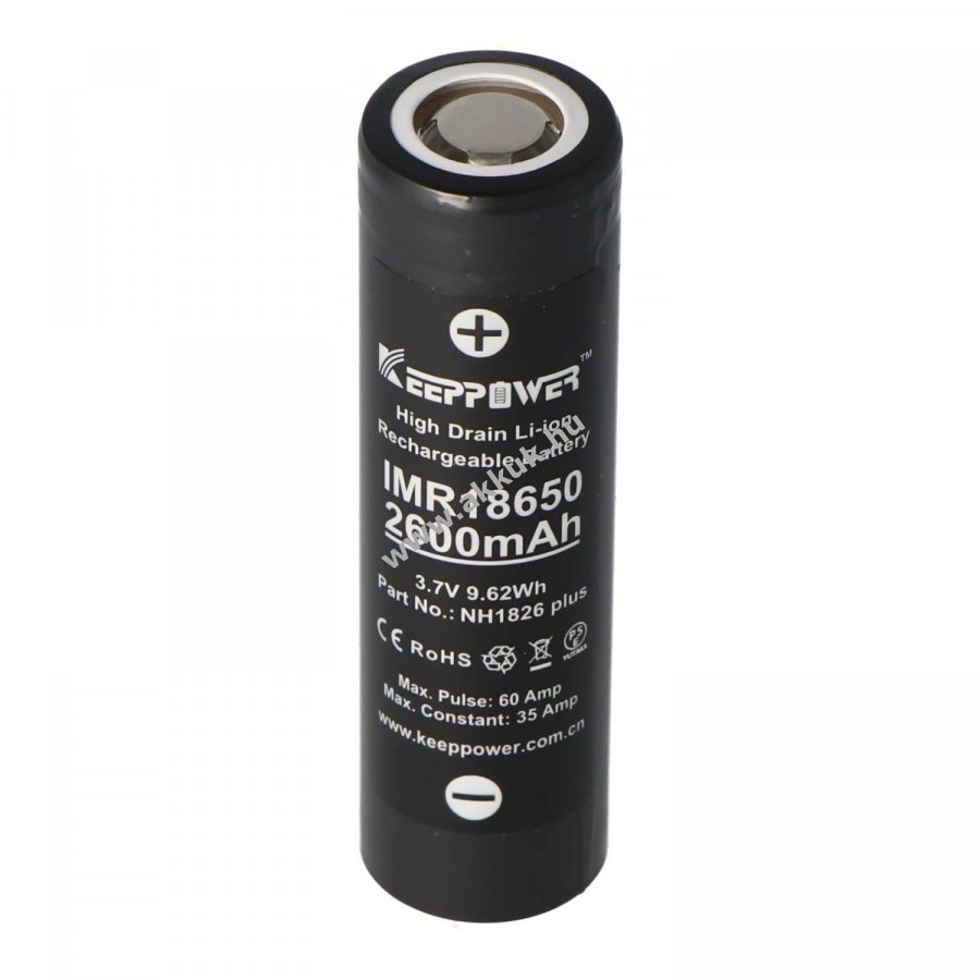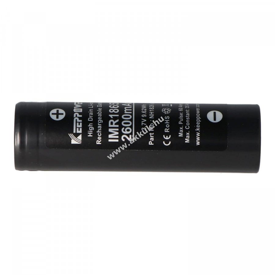 3.7V 2600mAh/9.4Wh Li-Ion 18mm x 65mm 48 gr. Keeppower Szavatosság (további részletek)