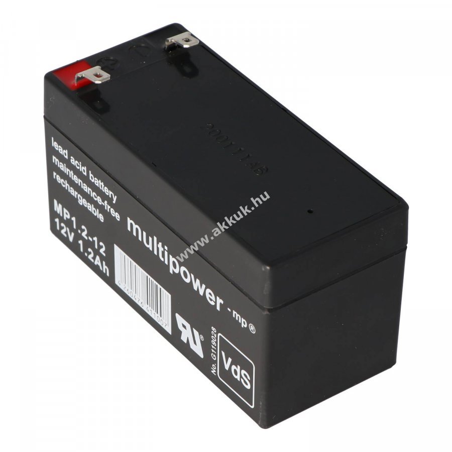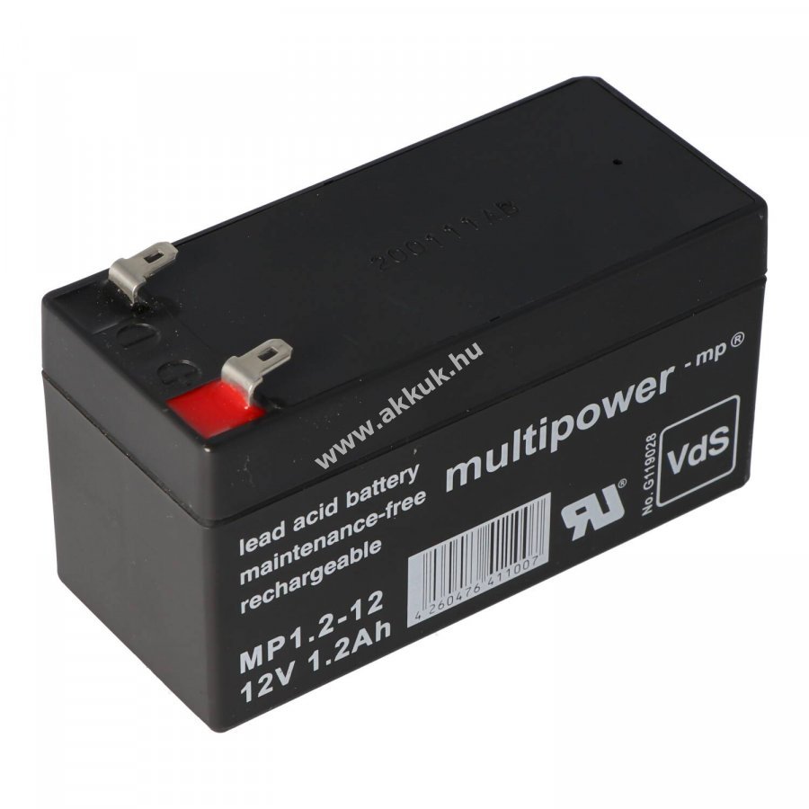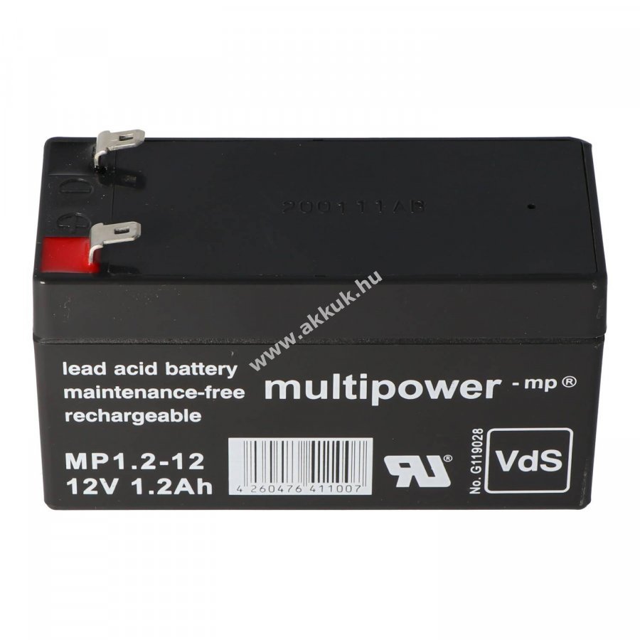 Multipower MP1.2-12 12V 1,2Ah VDS tanúsítvánnyal rendelkező, szelepes szabályozású, karbantartásmentes ólom-zselés akkumulátor (AGM technika), újratölthető.