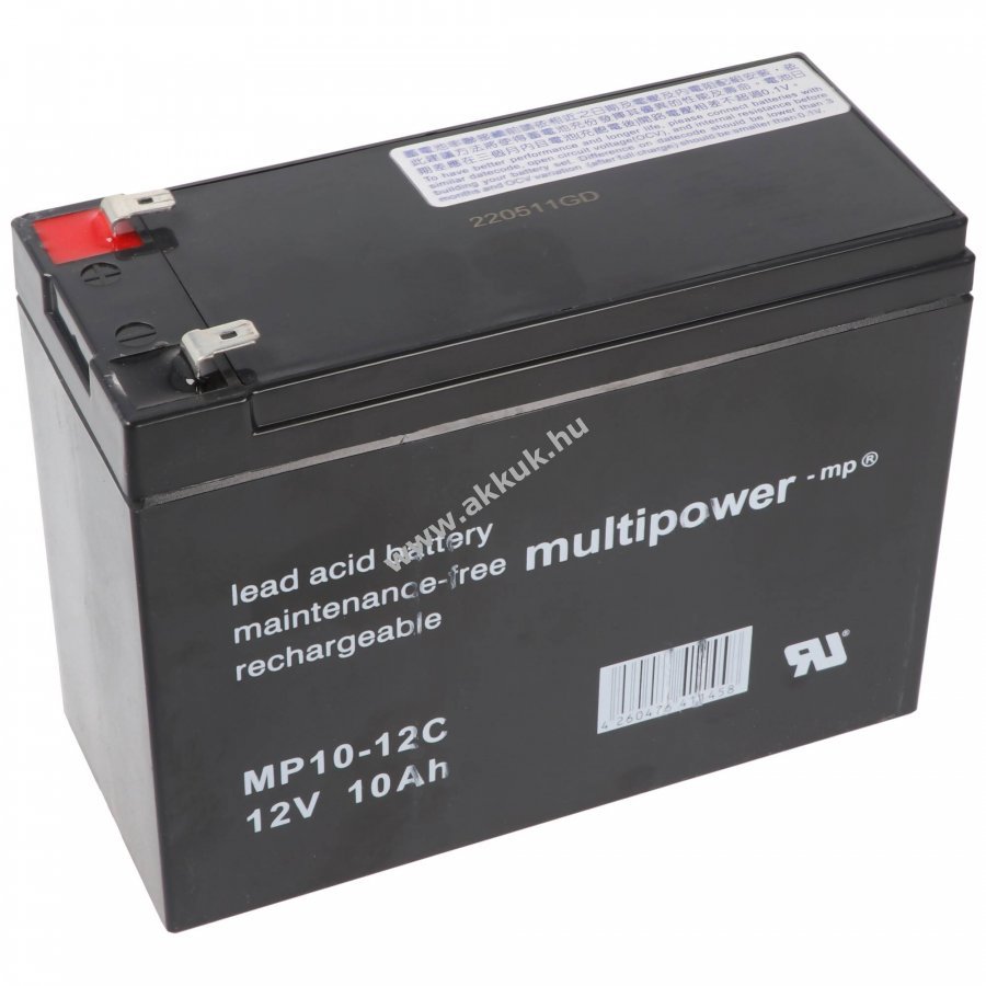 Multipower MP10-12C zyklenfester, zárt ólom-akkumulátor újratölthető, karbantartásmentes, szelepregulált kivitel, alacsony önkisüléssel és hosszú élettartammal.