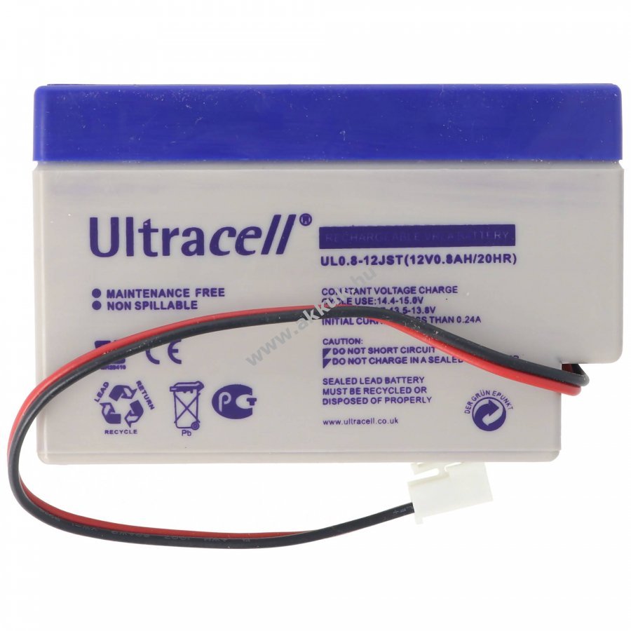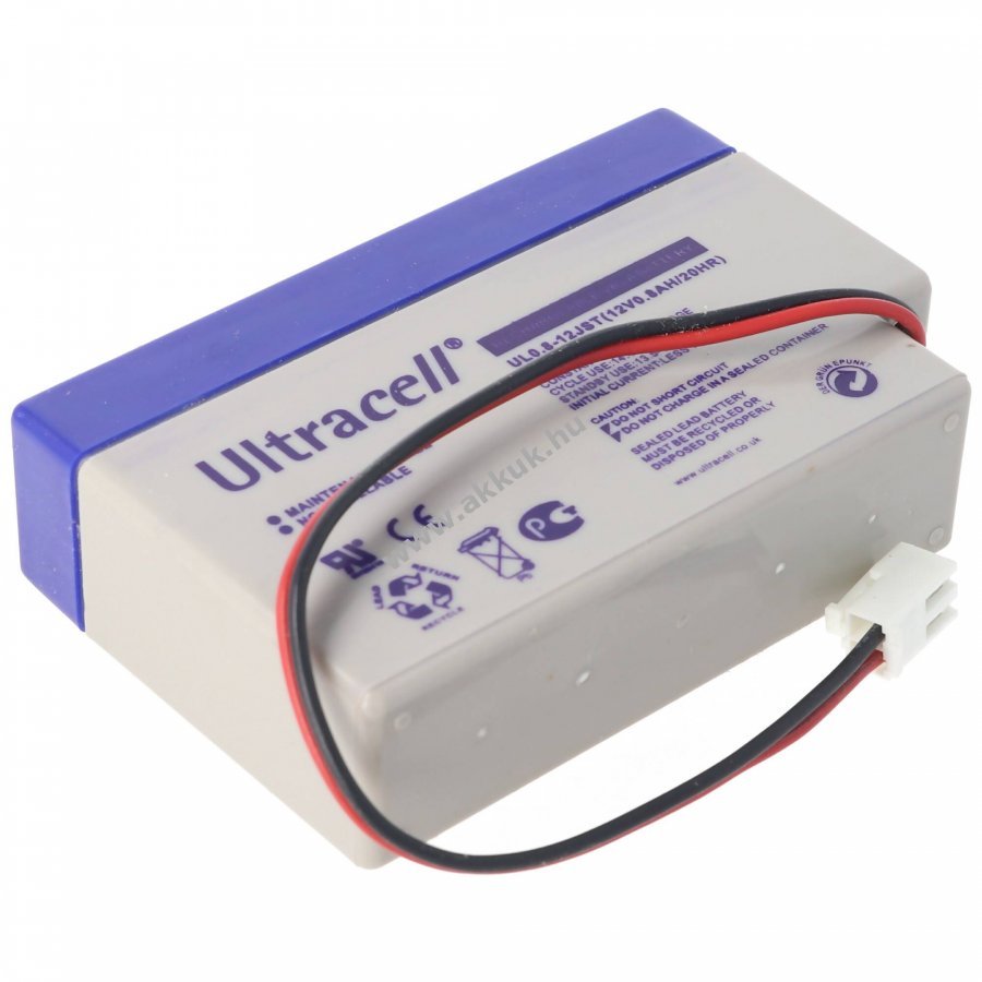 12V 800mAh/9.6Wh Pb 23.4mm x 13.4mm x 7.5mm 360 gr. Ultracell Szavatosság (további részletek)
