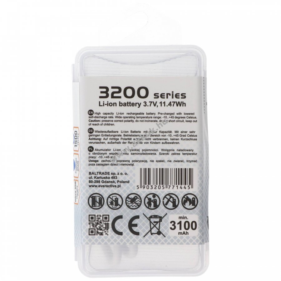 3.7V 3200mAh/11.84Wh Li-Ion 70.2mm x 18.4mm 48 gr. AccuCell Szavatosság (további részletek)