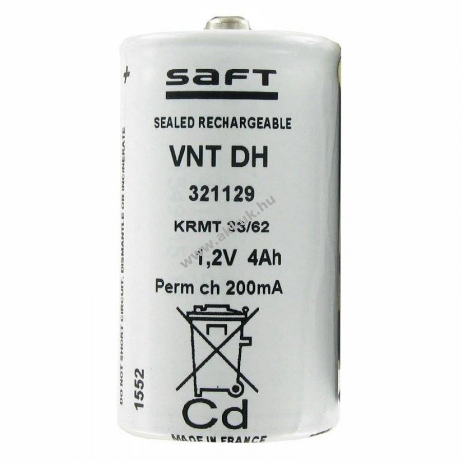 1.2V 4000mAh/4.8Wh NiCD 60.3mm x 32.3mm 132 gr. Saft Szavatosság (további részletek)