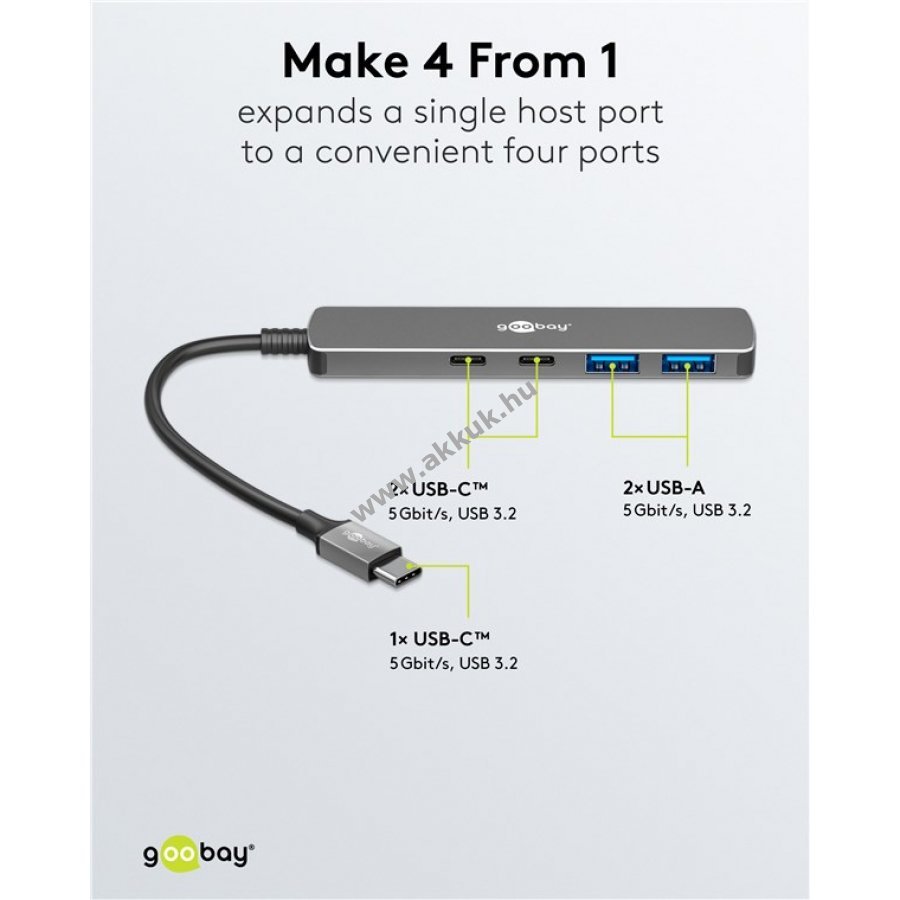 Egy USB-C port bővítése két USB-C és két USB-A csatlakozóvá