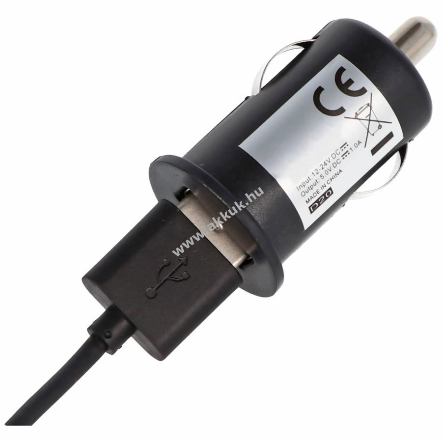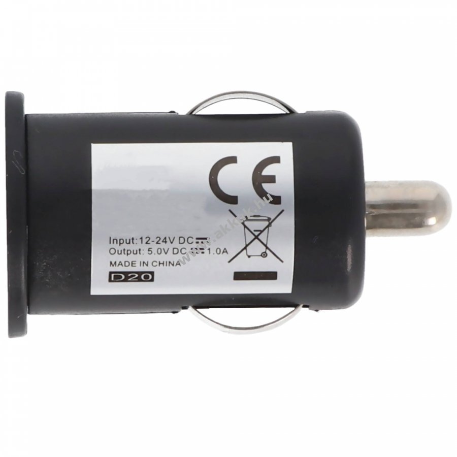 Extra kompakt 12-24V USB autós adapter 5V 1000mA kimenettel, süllyesztett LED-del, fekete.