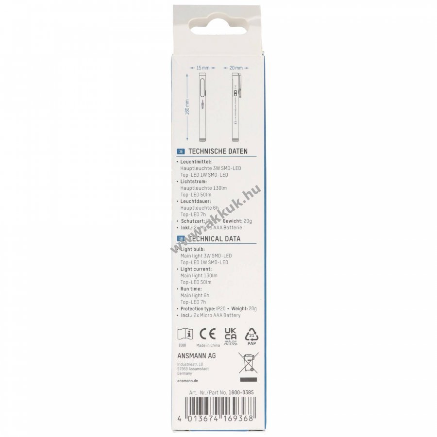 160mm x 15mm x 20mm 20 gr. Ansmann Szavatosság (további részletek)