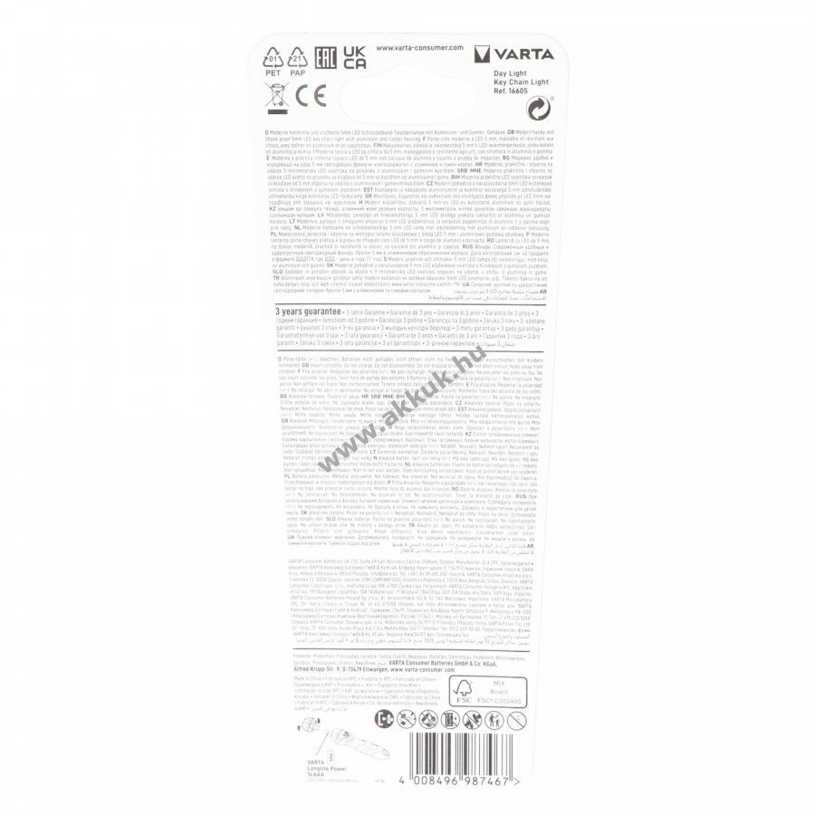 Varta LED zseblámpa Day Light kulcstartó 12lm 1x AAA alkáli 1,5V