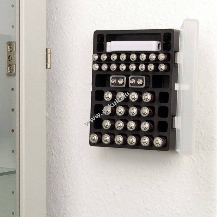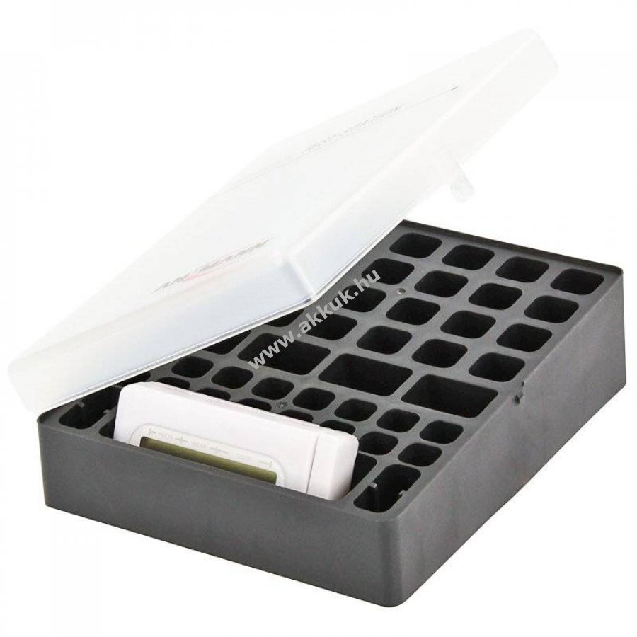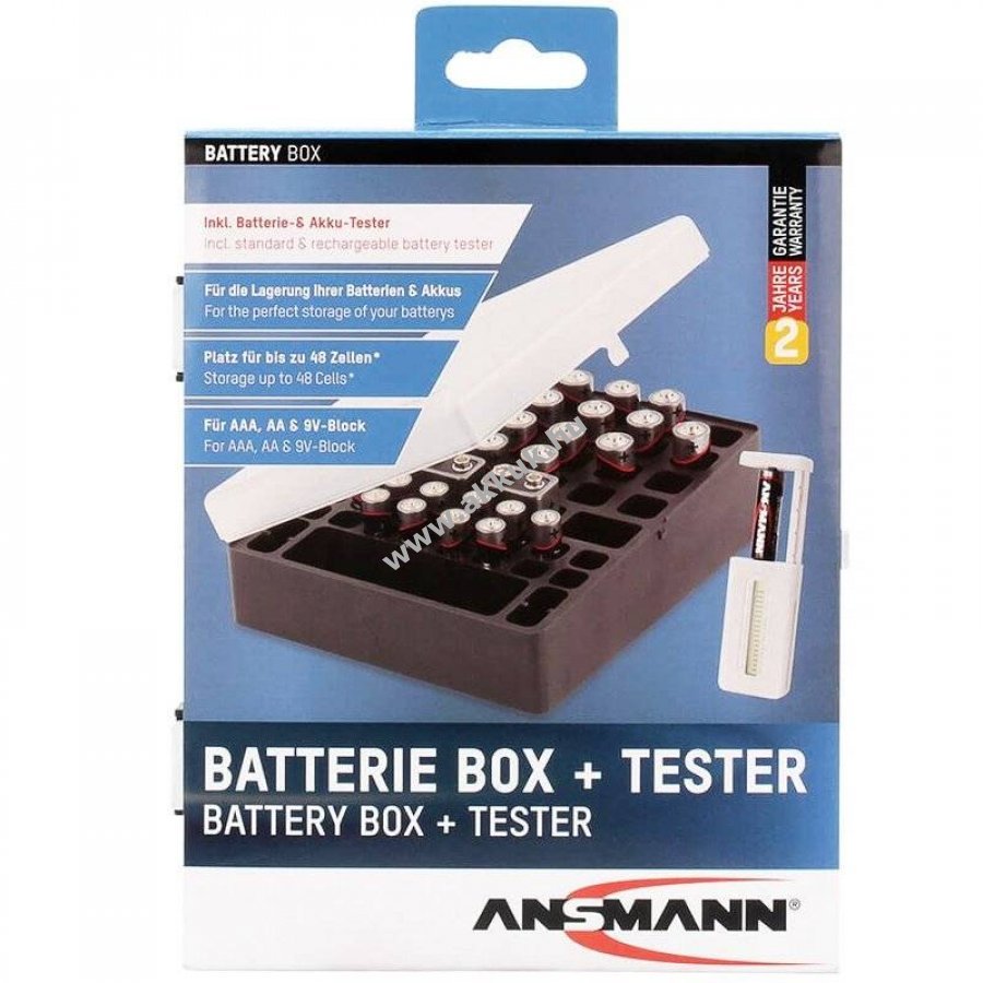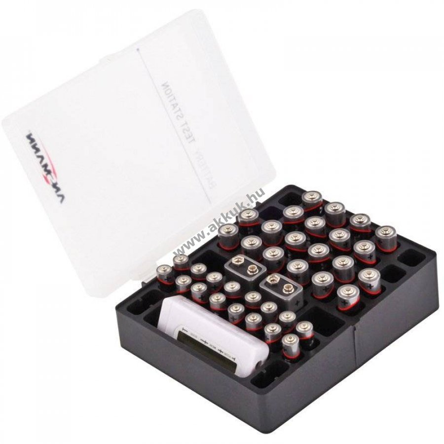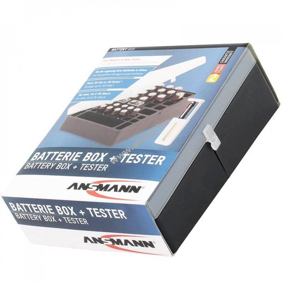 Praktikus, visszazárható Ansmann akku- és elemtartó doboz, amely rendezetten tárolja és védi az elemeket és akkukat a doboz tartalmaz egy beépített, LCD-vel rendelkező tesztert az állapot ellenőrzéséhez.